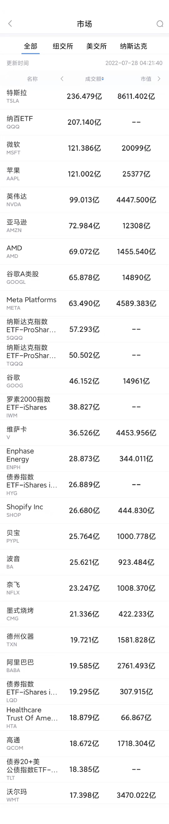 以下为美股当日交易最活跃的20只股票(按成交额):