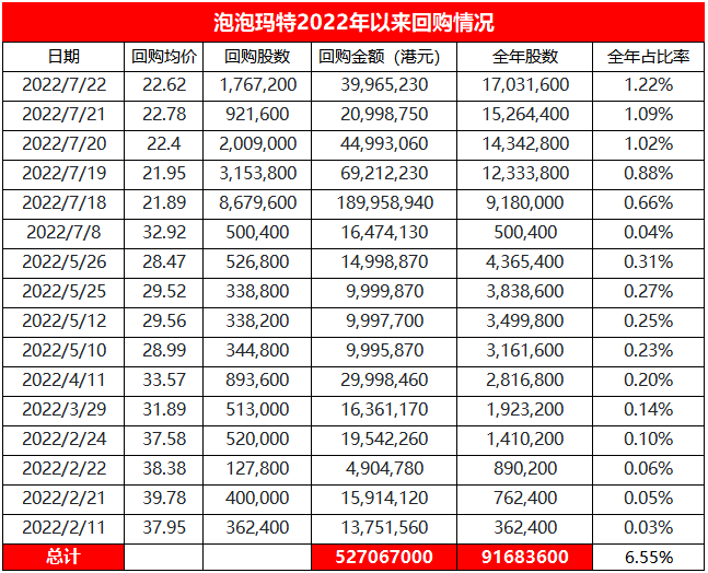 事实上,泡泡玛特对于股价下跌并不是“聊一聊”这样“敷衍”,而是用真金白银尝试维护股价。自今年以来,泡泡玛特总计进行了多达16次回购,累计回购金额更是超过了5亿港元。