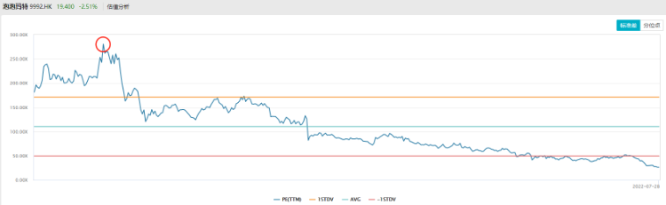 在业务和财务表现都如此靓丽的背景下上市,泡泡玛特很难不受到追捧。这也成就了泡泡玛特在短期内股价持续冲高到107港元上方,市值逼近1500亿港元的壮举。但火热的情绪往往是把双刃剑,这会让投资者忽略风险,彼时泡泡玛特的市盈率(TTM)一度高达近300倍,存在明显的高估。