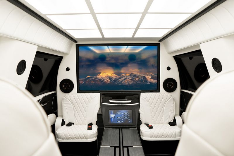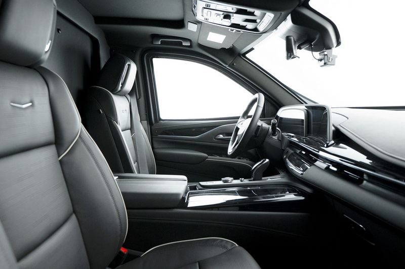 外观方面,装甲版凯迪拉克凯雷德“Chairman”前脸采用大尺寸熏黑进气格栅且内部带有爆闪警示灯,搭配两侧前灯组与纵置日间行车灯极具辨识度。与此同时,新车对车顶进行了升高,相较普通版车型高度提升5英寸,能够进一步扩展车内乘坐空间。