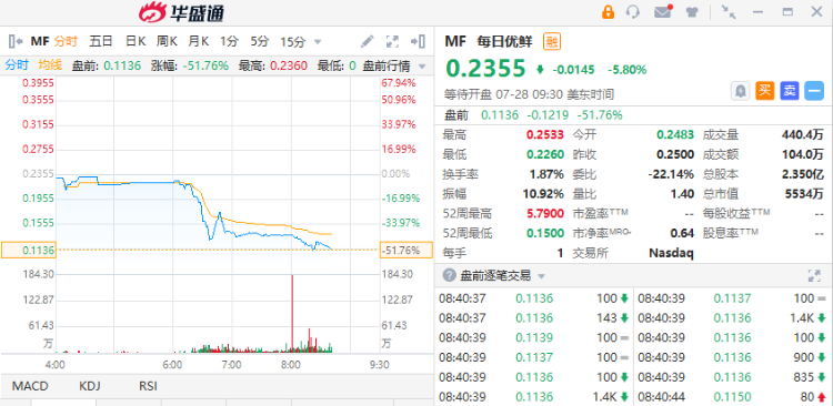 今日有消息称,每日优鲜融资未能交割成功,公司解散。有记者探访每日优先总部,了解到每日优鲜已于7月28日内部发起大规模裁员动作。HR召开线上会议,称公司新一轮融资尚未到账,无法于约定期限支付员工被拖欠工资,同时告知员工“工作就截止到今天了。”有多位员工收拾办公物品准备离开,也有来追欠款的供应商。截至北京时间20:41,每日优鲜盘前跌超50%。