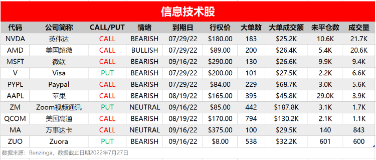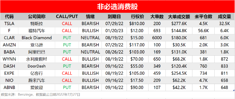 周三(7月27日),非必选消费、信息技术和通信服务板块相关个股出现较多活跃单,按照当日成交量排行,榜单TOP10分别如下:
