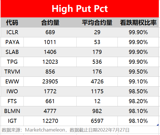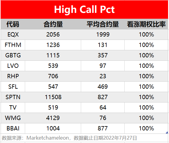 注:High Call Pct/High Put Pct是指相关期权标的当前看涨/看跌比例大小,该比值越高意味着该期权标的看涨/看跌的合约占比越高。