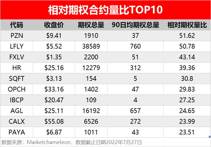 注:相对期权合约量比,是指当前交易日期权合约数量与90日平均期权合约数量的比值,相对期权量比越高,意味着该期权标的近期活跃度越高,不同于期权合约总量,该量比指标可以帮助发现一些期权数量绝对值不高,但是近期合约数量显著上升的期权标的。