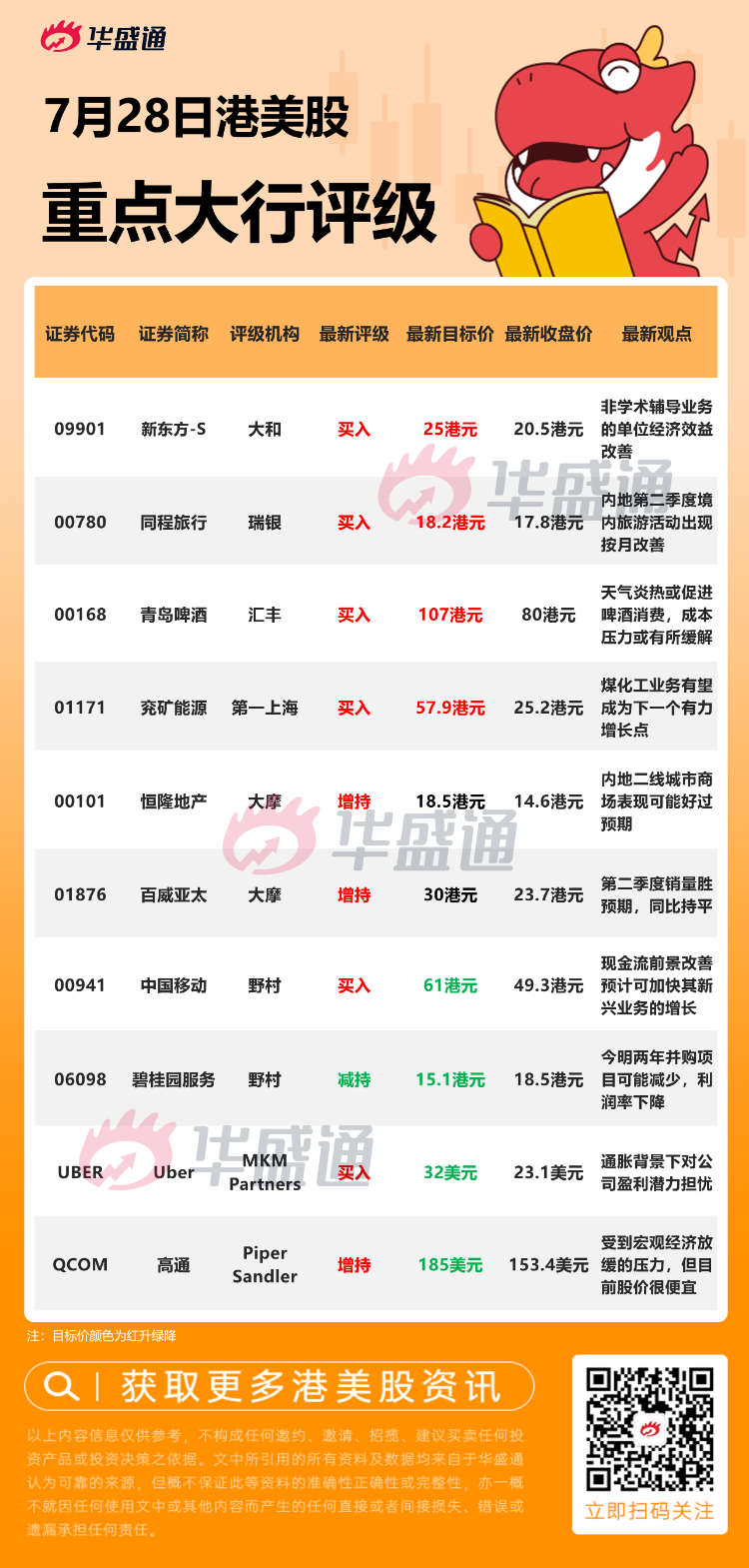 华西证券发布研究报告称,互联网监管拐点信号明确,22Q1经营业绩超预期印证精细化运营能力,22Q2受宏观环境与疫情影响业绩低点确立,下半年复苏势头明确龙头公司恒者恒强,叠加当前板块估值压制要素解除、板块和重点个股估值均极具性价比,受益标的为社交及游戏龙头腾讯控股(00700)、网易-S(09999)、心动公司(02400),短视频广告及电商龙头快手-W(01024),中长视频龙头哔哩哔哩-SW(09626)、爱奇艺(IQ.US),本地生活及电商龙头美团-W(03690)、京东集团-W(09618)。