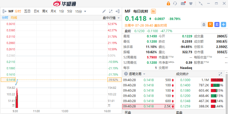 每日优鲜今日美股盘中重挫,现跌47.77%。