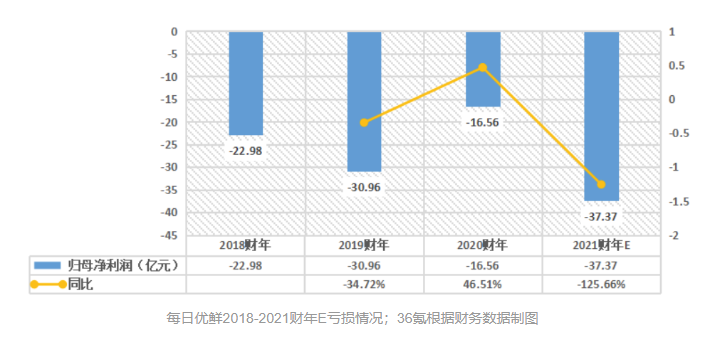 随即,每日优鲜又发布了2021财年的营收预期,预计亏损37.37亿元,打破了自成立以来的亏损纪录。