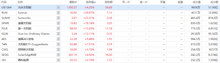美东时间周三,美国参议院多数党领袖舒默和民主党参议员曼钦就一项包括3690亿美元清洁能源补贴条款的“2022年通胀削减法案”达成协议。美国清洁能源协会CEO希瑟·齐查尔对此表示:“整个清洁能源行业都松了一口气。”据悉,“2022年通胀削减法案”将在下周由参议院全体成员审议。该法案的条款包括将清洁能源税收优惠政策延长 10 年。太阳能投资税减免(Investment Tax Credit)对该行业的发展至关重要,通常会获得两党的支持,它最近一次延长期限是在 2020 年。受此消息影响,美股光伏太阳能板块大涨。