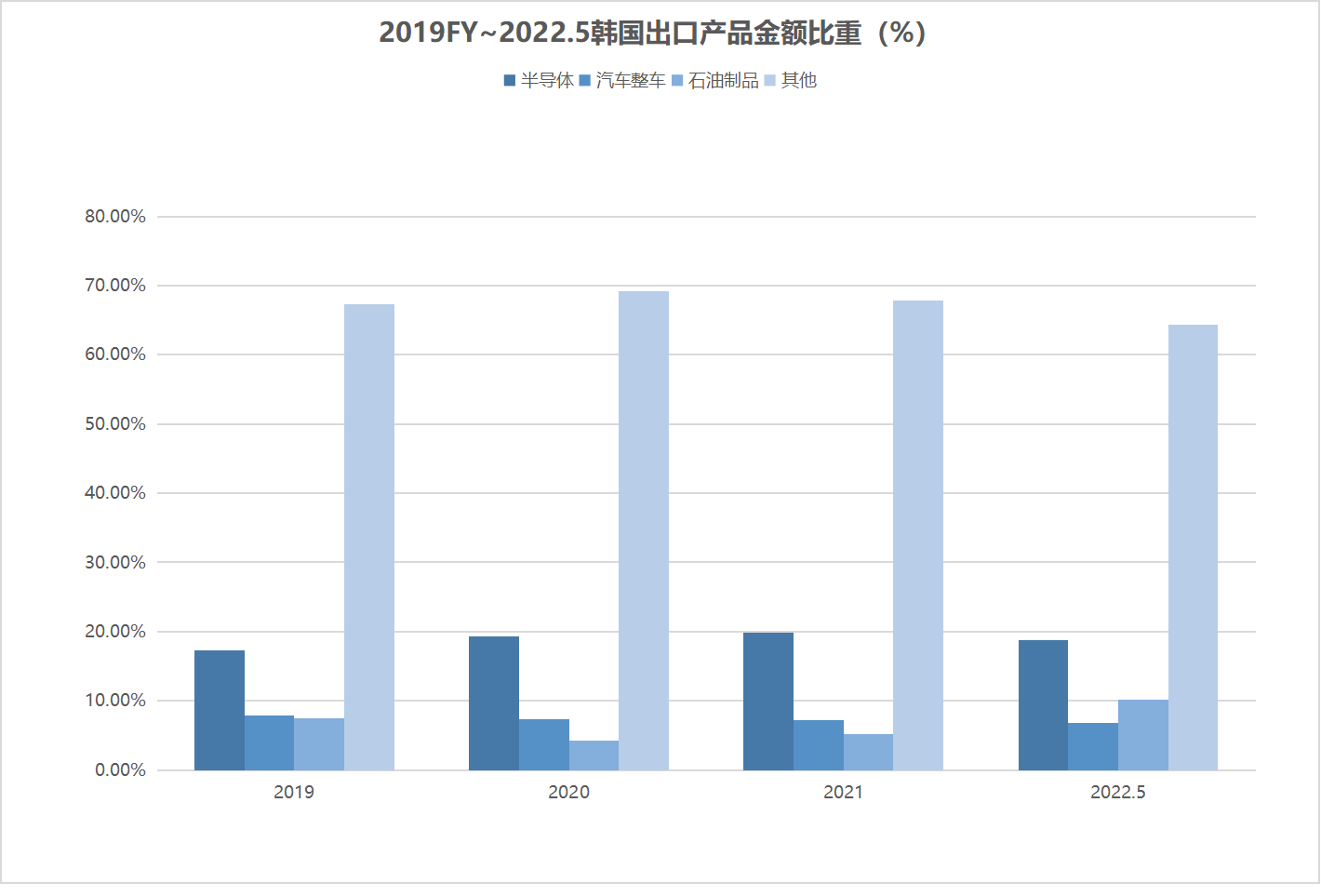 韩国2019年全年至2022年5月主要产品出口金额比重(数据来源:公开信息)