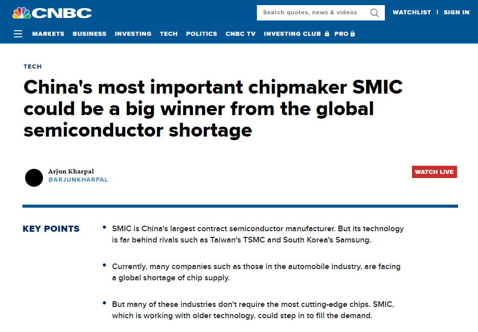 并且在2021年3月,中芯国际又获得了美国商务部许可,被允许进口14nm制程芯片的所需设备和材料。