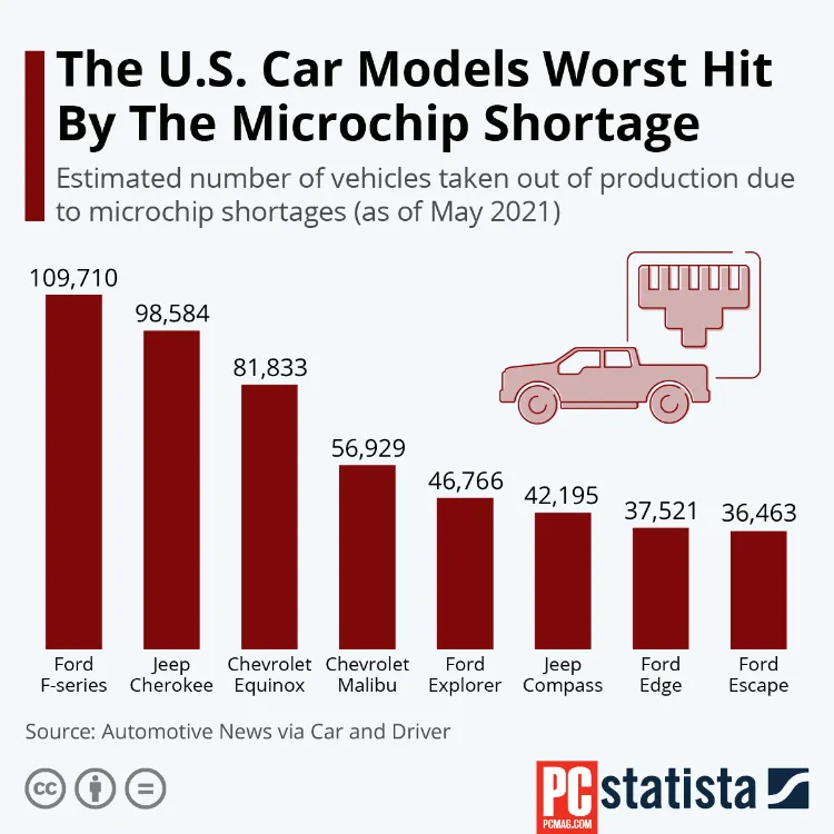 据统计,在这场贯穿2021年的“芯片危机”中,美国经济大约损失了2400亿美元。