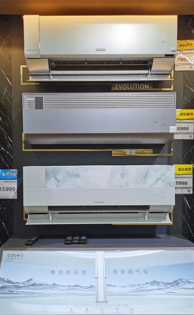 在美的空调销售专区,既有千余元的传统挂机,也有上万元的高端智能柜机。销售人员表示,近期来咨询COLMO机型的顾客较多,这是美的集团旗下AI科技家电品牌,融入水墨画设计,性能数字化,能满足新时代消费群体的需求。
