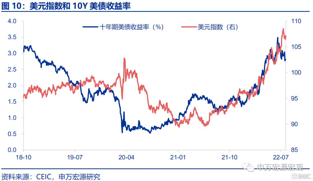 面对22Q2超预期的大幅衰退,表态仍然倔强的美联储,下半年决策是否会有变化?面对超预期的大幅衰退,美联储主席鲍威尔、前主席现任财长耶伦均再度强调了仍然较低的失业率,暗示当前美国经济的衰退源于潜在产出的下行,从而试图让市场相信美联储仍将基本沿袭6月点阵图路径完成全年加息。但值得注意的是,美联储货币政策双目标中,稳定经济增长是其重要的决策支柱,今年上半年鲍威尔强调经济增速回落背景下失业率仍然较低,实际上是对美国居民就业意愿持续偏低问题的选择性忽略,高通胀背景下,这种技术层面的策略可以给美联储加息提供更大的短期空间,但一旦经济陷入更深度衰退的概率提升,美联储绝无可能对明显偏低的劳动参与率熟视无睹。此外,大幅衰退的风险也意味着下半年到明年美国通胀路径可能实质性低于6月美联储预期水平,也为美联储加息的逐步放慢提供了可能性。我们预计美联储9月加息50BP,并以11月加息25BP提前结束本轮加息过程。维持至年底10Y美债收益率、美元指数进一步回落的预测不变。