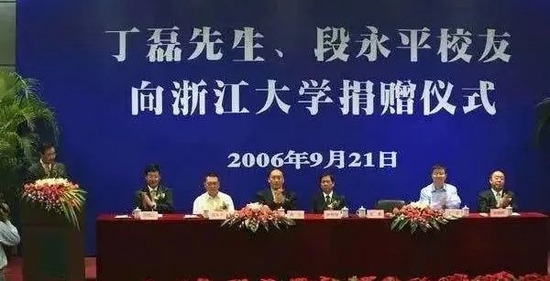 2006年,段永平给母校浙江大学捐款3000万美元,丁磊也陪同一起捐了1000万美元。按照当时的汇率计算,两人合计捐赠3亿多元人民币,创下了中国内地高校单笔捐赠的记录。