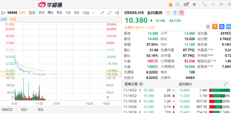 今日早盘,港股物业管理板块大跌,截至发稿,金科服务跌超33%,旭辉永升服务跌逾12%,碧桂园服务、世茂服务跌超8%,融创服务跌超7%,新城悦服务跌逾6%。
