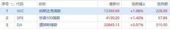 美东时间周五(7月29日),美股三大指数集体收涨,纳指收涨1.88%,标普500收涨1.42%,道指收涨0.97%。