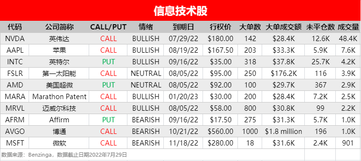 周五(7月29日),非必选消费、信息技术和医疗健康板块相关个股出现较多活跃单,按照当日成交量排行,榜单TOP10分别如下: