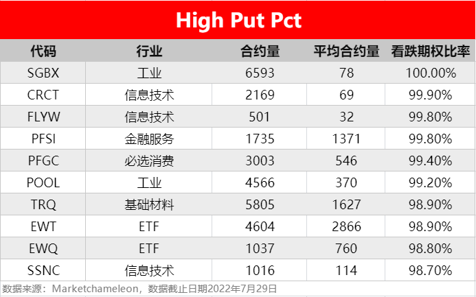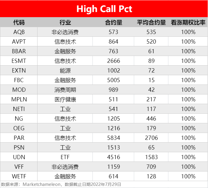 注:High Call Pct/High Put Pct是指相关期权标的当前看涨/看跌比例大小,该比值越高意味着该期权标的看涨/看跌的合约占比越高。