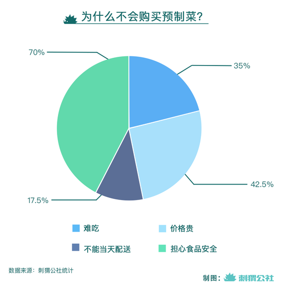 调查结果显示,在明确表示不会购买与不会复购的用户中,有70%的人是因为担心食品安全,例如食品包装的封闭性、运输过程中的储存情况以及生产厂家的卫生状况,包括食材的新鲜程度等,对于用户来说这一系列过程都是不透明的。