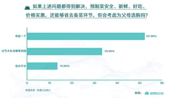 刺猬公社的调查结果显示,有52%的年轻人愿意考虑送给父母,超过三分之一的人表示会以过节大礼包的形式邮寄到家。