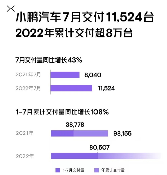 小鹏汽车:7月交付11524辆智能电动车,同比增长43%