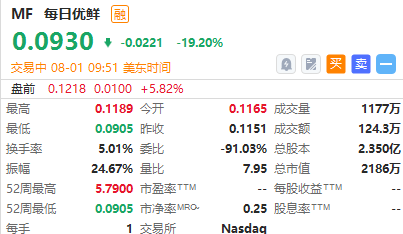 每日优鲜跌超19%,公司此前否认发布“资金断链无法正常经营”的通知。
