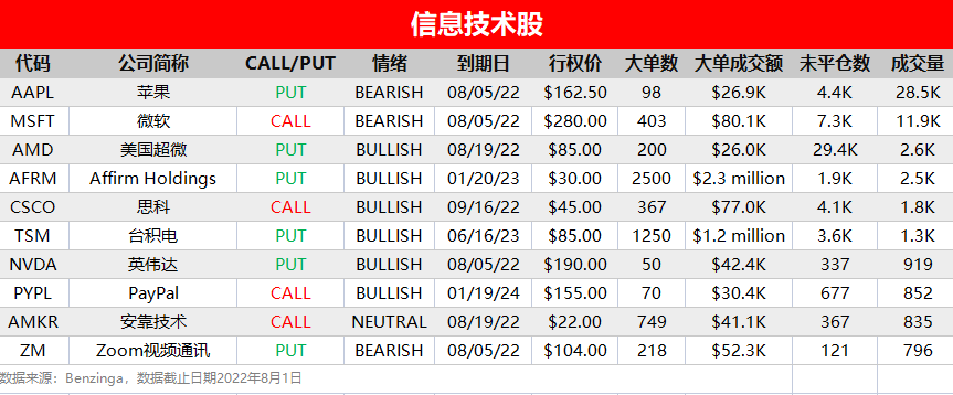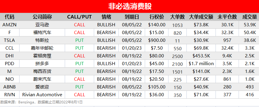 周一(8月1日),非必选消费、信息技术和工业板块相关个股出现较多活跃单,按照当日成交量排行,榜单TOP10分别如下:
