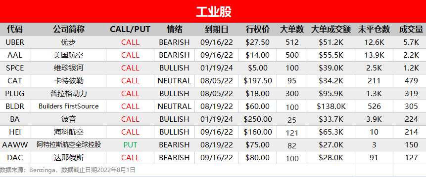 今日榜单TOP10:优步、美国航空、维珍银河、卡特彼勒、普拉格动力、Builders FirstSource、波音、海科航空、阿特拉斯航空全球控股、达那俄斯。