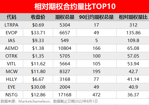 2.相对期权合约量比TOP10