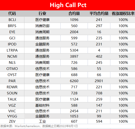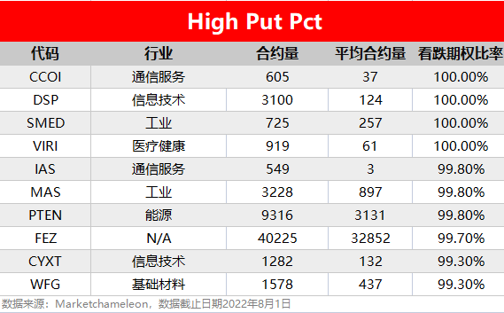 注:High Call Pct/High Put Pct是指相关期权标的当前看涨/看跌比例大小,该比值越高意味着该期权标的看涨/看跌的合约占比越高。