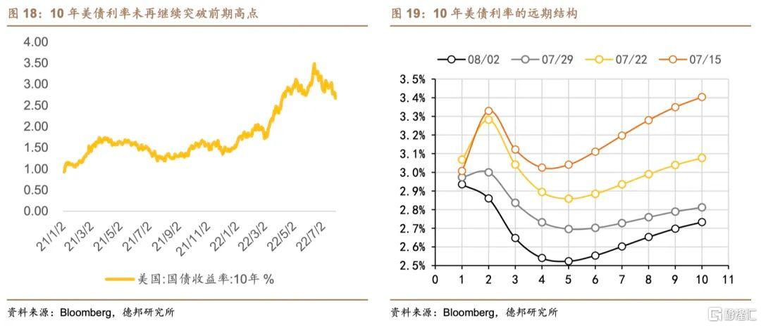 当前美国所面临是全面的、广泛的价格上涨,预期结束的是通胀环比见顶而非通胀同比向正常状态回落。近期美债利率的交易体现为近端利率的边际抬升和远端利率的全面下降,随着时间推进,市场对未来衰退的预期的升温进一步强化,10年美债利率大概率难以突破3.5%的前高,实际利率可能进入下行通道。