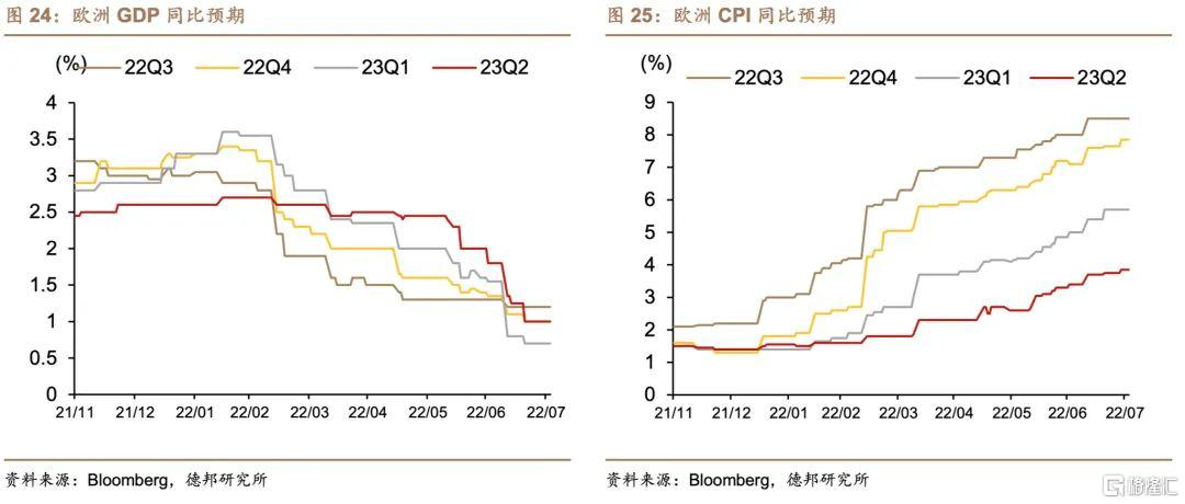 能源短缺推高欧洲能源通胀,进而带动欧洲总体通胀的上行。欧央行已于7月超预期加息50bps,但货政紧缩对实际利率带来的上行压力,难以抵消掉高企的通胀与悲观的经济预期给实际利率带来的下行压力。中期来看,欧洲实际利率仍将面临较大的下行压力。