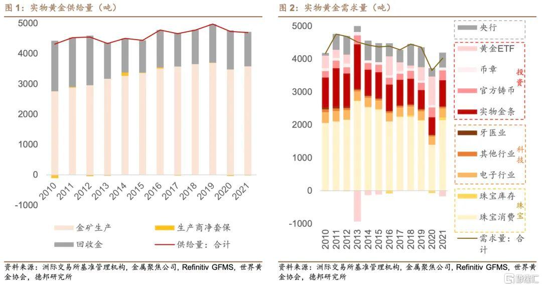 1.1. 黄金供需均较为稳定,商品属性不是价格波动的主要来源