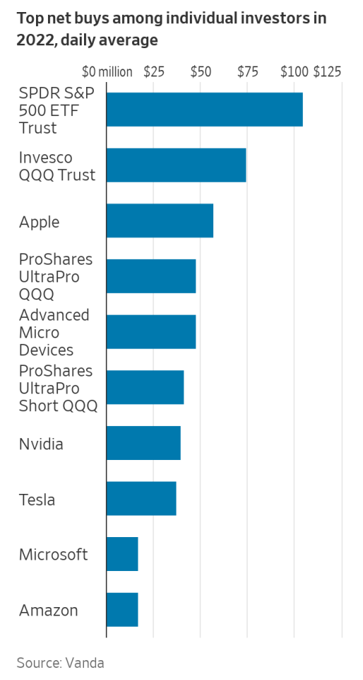 与此同时,自2020年以来,包括苹果、AMD和景顺QQQ信托ETF就一直是备受欢迎的散户投资对象。