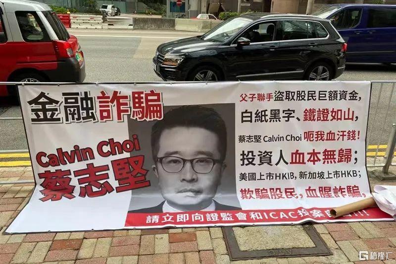 据说,蔡志坚还曾被中民投在他的所在办公楼下面挂横幅控诉其“联手家人盗取股民资金,血腥诈骗,让投资人血本无归”,呼吁其向香港证监会和香港廉政公署自首。