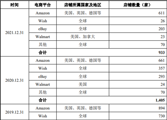 赛维时代的高速增长,起初依赖于店群模式,但各大平台后来均对此加强了监管。如亚马逊原则上禁止一家公司运营多个店铺,并频繁通过“关联审查”的方式,检索“同一卖家是否开立两个以上的账户”,一经发现就将多余的店铺甚至全部店铺关闭,封号风波使得店群模式的风险进一步上升。早在2016年,赛维时代就已开启转型,无论是有意压缩还是被动关闭,其在各大平台的店铺数量从2019年的2361家店急剧下降至2021年的933家店,3年减少60%(表5)。相对较早的转型,也是赛维时代在2021年封号潮中损失相对较少的原因。