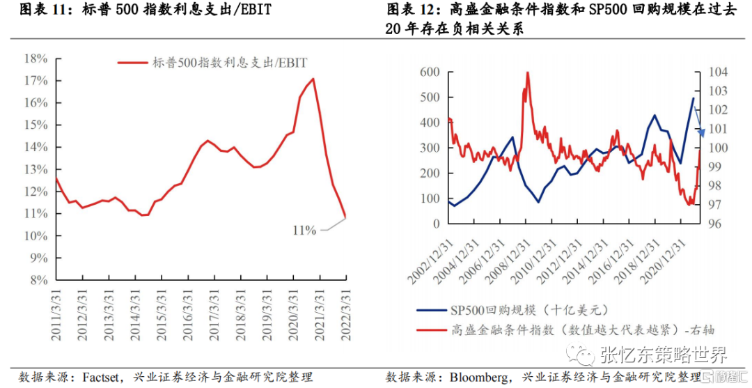 首先,过去两年“盈利泡沫”将破灭——未来数次财报将见证美股盈利环比负增长。上半年上市公司业绩尚未受到经济走弱的明显波及。后续随着居民储蓄率降至历史低位叠加高通胀,美国消费动能将明显回落,下半年上市公司收入增速不容乐观;同时劳动力成本、融资成本继续恶化,而金融条件收紧带来的回购动能弱化,对于美股EPS更是雪上加霜。