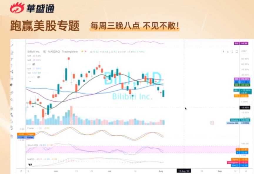从整体趋势来看,B站跟其他的中概股也比较像,现在基本上就是一个向下,转折点取决于整个b站现有的情况不是特别乐观,这也是跟整个环境市场是有关系的,所以现在来说财报期股价并没有在一个好的阶段里面。