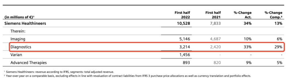 西门子医疗整体营收105.28亿欧元,较上年+34%。诊断业务营收32.14亿欧元,同比+33%,增速持续攀升(上年同期+20%)。