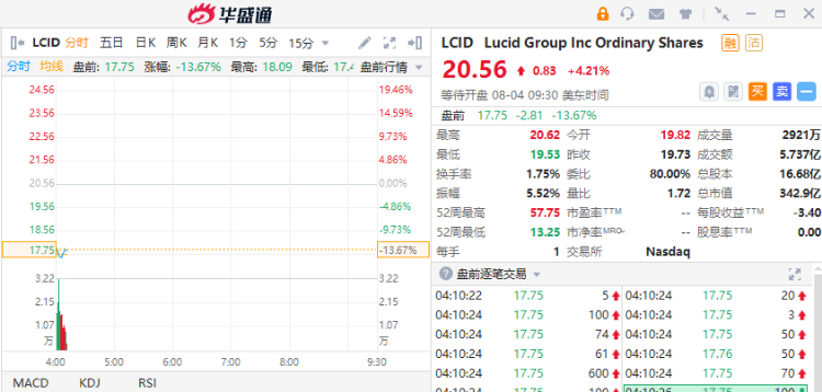 消息面上,Lucid Group Q2营收9733.6万美元不及预期,并将全年产量目标从1.2万至1.4万辆大幅下调至6000至7000辆。