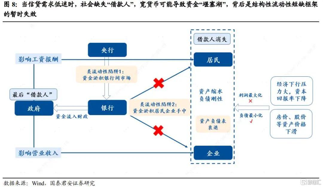 狭义层面上即为央行通过设置法定存款准备金制度来人为制造银行体系流动性结构性短缺,这是我国货币政策调控由数量型向价格型过渡阶段独创的货币政策理念。复盘历史,这种流动性管理思路的演变背后主要是我国银行间流动性供给格局在2014年前后发生较大变更。值得注意的是,当信贷需求低迷时,社会缺失“借款人”,宽货币可能导致资金“堰塞湖”,背后是结构性流动性短缺框架的暂时失效。