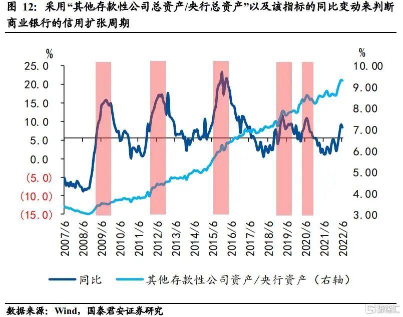 信用和货币分别体现在银行的资产端和负债端。信用周期的形成过程为央行的基础货币供给增长(负债端扩张)驱动商业银行的信贷投放扩张(资产端扩张),体现了实体经济流动性的周期性变化。