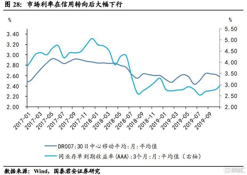 2018年7月,资管新规细则落地,非标降压压力缓解,叠加此后进行的定向降准,市场利率大幅下行,信用环境逐渐宽松。本轮宽信用窗口为2018年7月至2019年12月,特征如下:
