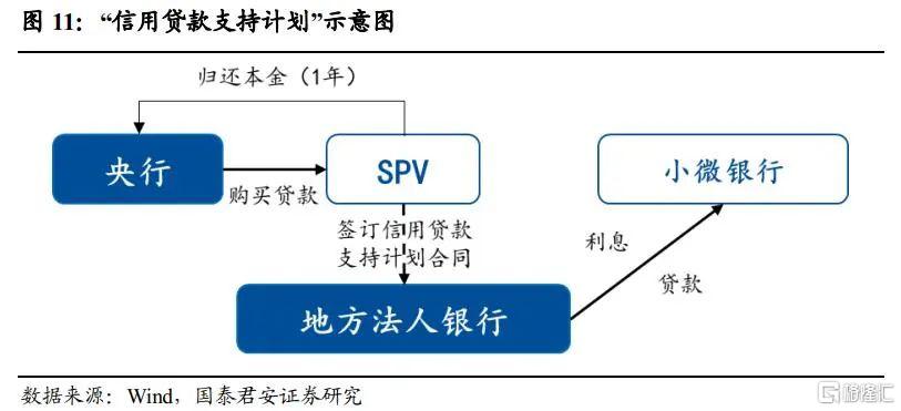 “信用贷款支持计划”类似于定向质押逆回购,方式接近委托贷款,不同的是带有杠杆效应。主要内容包括四方面:(1)央行使用4000亿元再贷款专用额度购买普惠小微信用贷款;(2)购买范围为2020年3月1日至12月31日期间新发放普惠小微信用贷款的40%,贷款期限不少于6个月;(3)购买部分的贷款利息、坏账损失均由放贷银行承担;(4)购买上述贷款资金,放贷银行应于购买之日起满一年时按原金额返还。