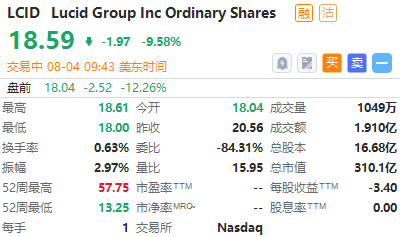 美国电动汽车企业Lucid $LCID 盘初跌超9%,二季度营收及全年产量指引均不及预期,交付方面,Lucid第二季度交付量为679辆,上季度为360辆。