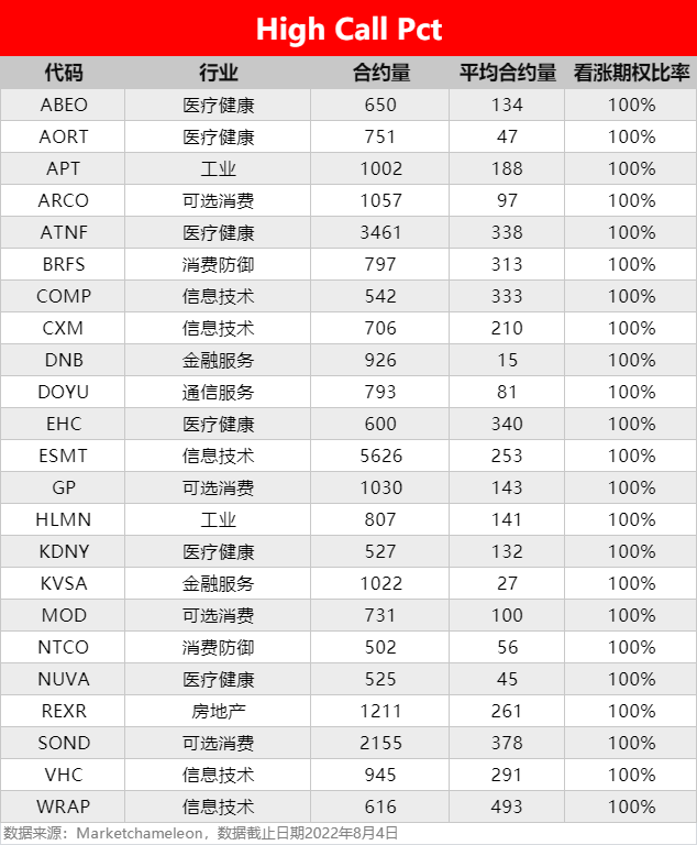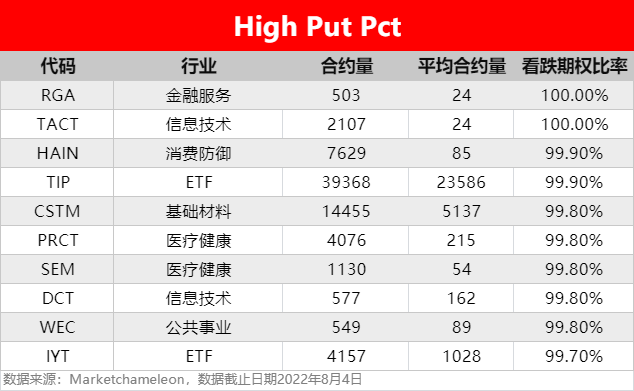 注:High Call Pct/High Put Pct是指相关期权标的当前看涨/看跌比例大小,该比值越高意味着该期权标的看涨/看跌的合约占比越高。