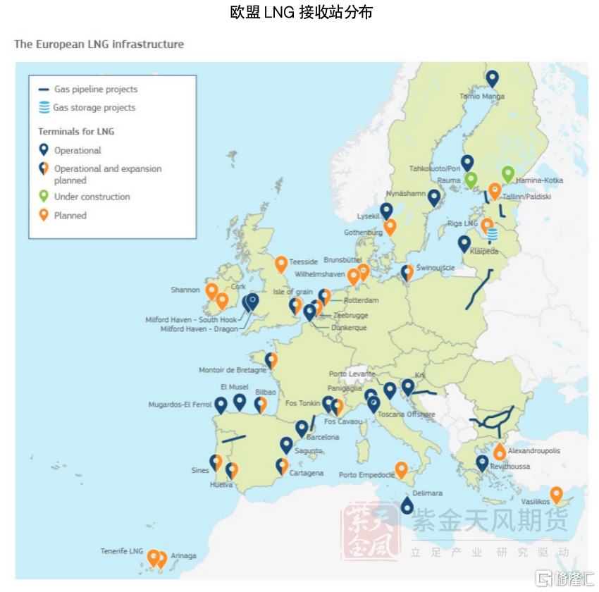 欧盟还面临LNG接收站与境内管道连接不畅问题,比如西班牙拥有大量接收站,但天然气库容以及管道容量不足使得西班牙的LNG难以运送到其他国家。