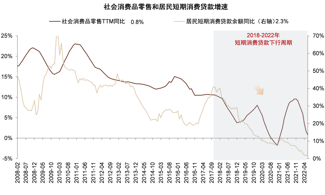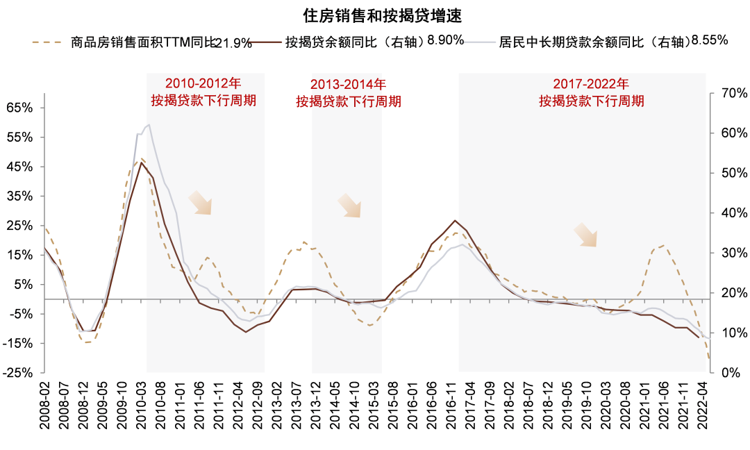 地产去杠杆成为信用扩张最大拖累。2Q22按揭/开发贷余额同比增长6.2%/-0.2%,为历史最低水平附近,主要由于购房需求较弱及疫情影响。2Q22按揭贷和开发贷合计净减少约750亿元,占全部新增贷款-1.4%;二者合计同比少增0.9万亿元,是2Q22新增贷款同比最大拖累项。考虑季节性因素,2Q22按揭贷和开发贷增量(TTM)占全部贷款仅为11%,相比2017年的43%已大幅下滑,为2009年以来最低水平。