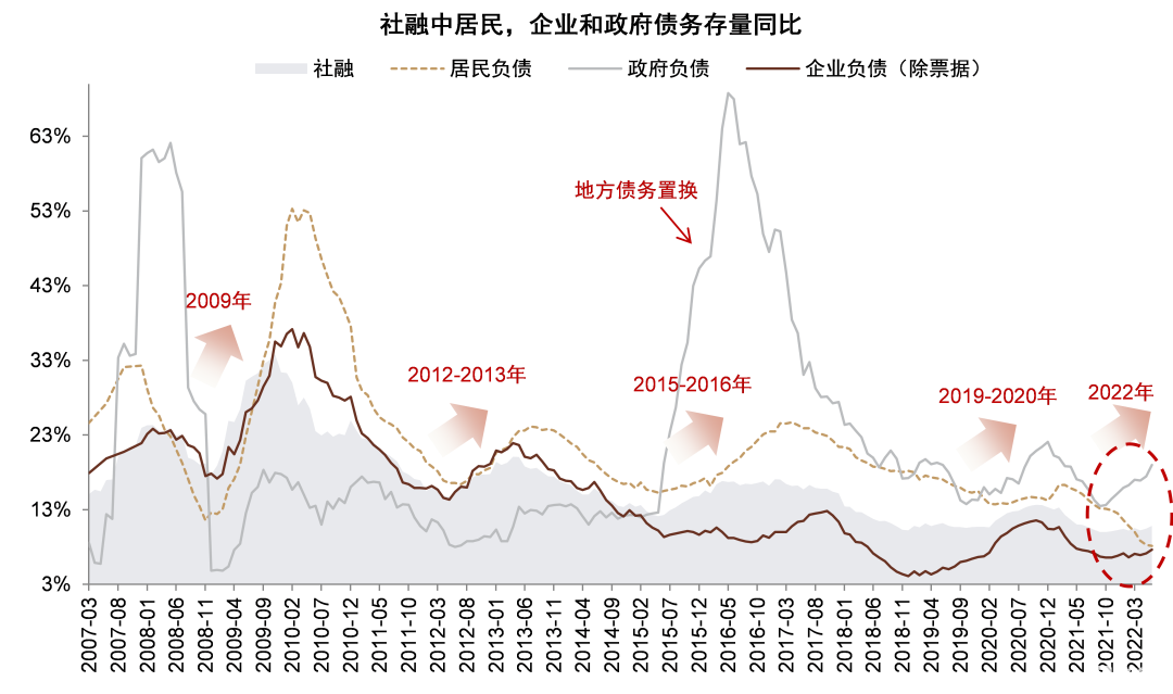 图表8:2022年政府部门负债增速上升,居民部门负债增速下滑,企业部门负债增速持平