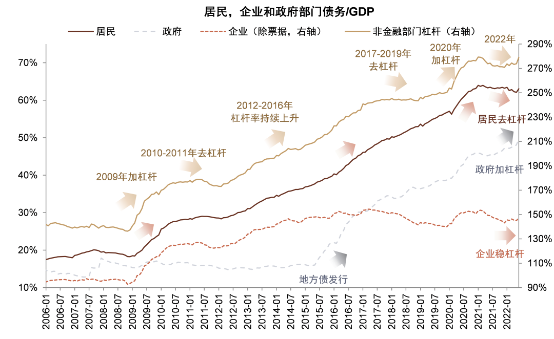 图表7:2022年政府部门加杠杆,居民部门去杠杆,企业部门杠杆保持稳定